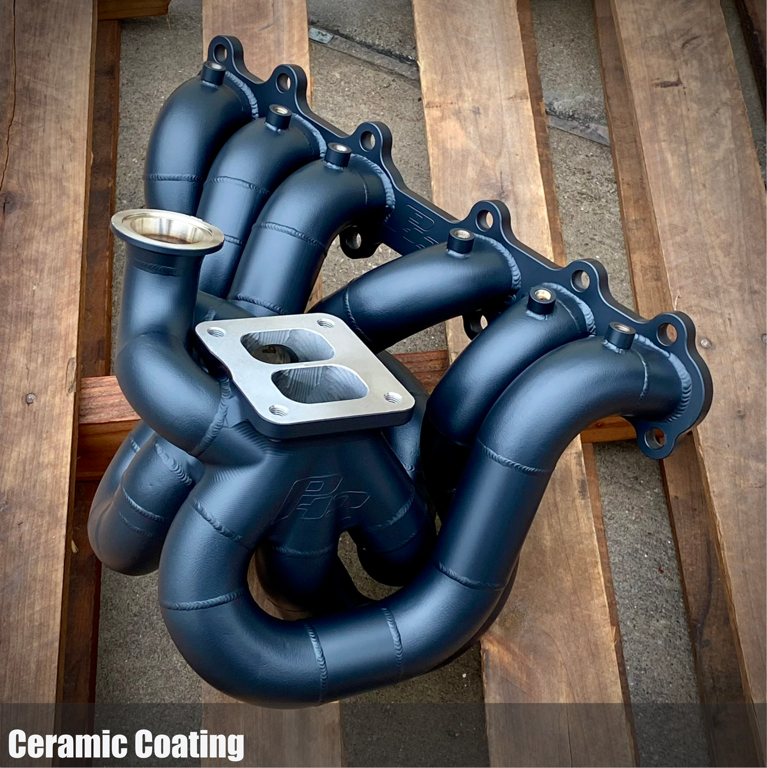 Ceramic coatings are most commonly applied to automotive exhaust components and engine parts to manage heat and improve performance. Typical applications include headers, turbo manifolds, turbo housings, downpipes, and complete exhaust systems. By keeping heat contained within these components, ceramic coatings help reduce engine bay temperatures, improve exhaust efficiency, and extend the life of high-performance parts.